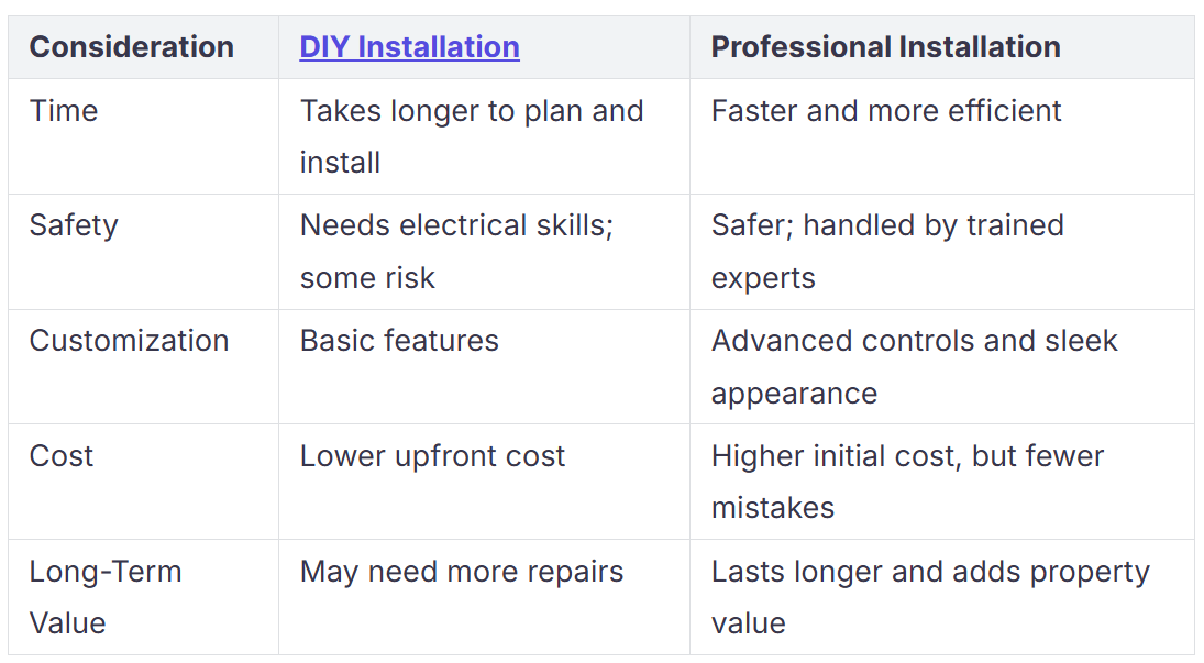 คุณจะติดไฟ LED กลางแจ้งด้วยตัวเองหรือขอความช่วยเหลือก็ได้ การทำด้วยตัวเองช่วยประหยัดเงินและให้คุณเลือกการออกแบบได้ คุณต้องรู้บางอย่างเกี่ยวกับไฟฟ้าและใช้เวลาในการวางแผน หากคุณทำผิดพลาด อาจไม่ปลอดภัยหรือทำให้ไฟเสียหายได้